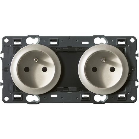 Celiane double prise précablée titane mécanisme