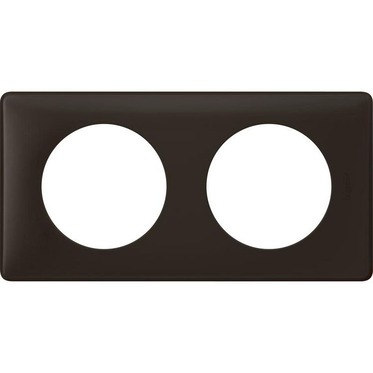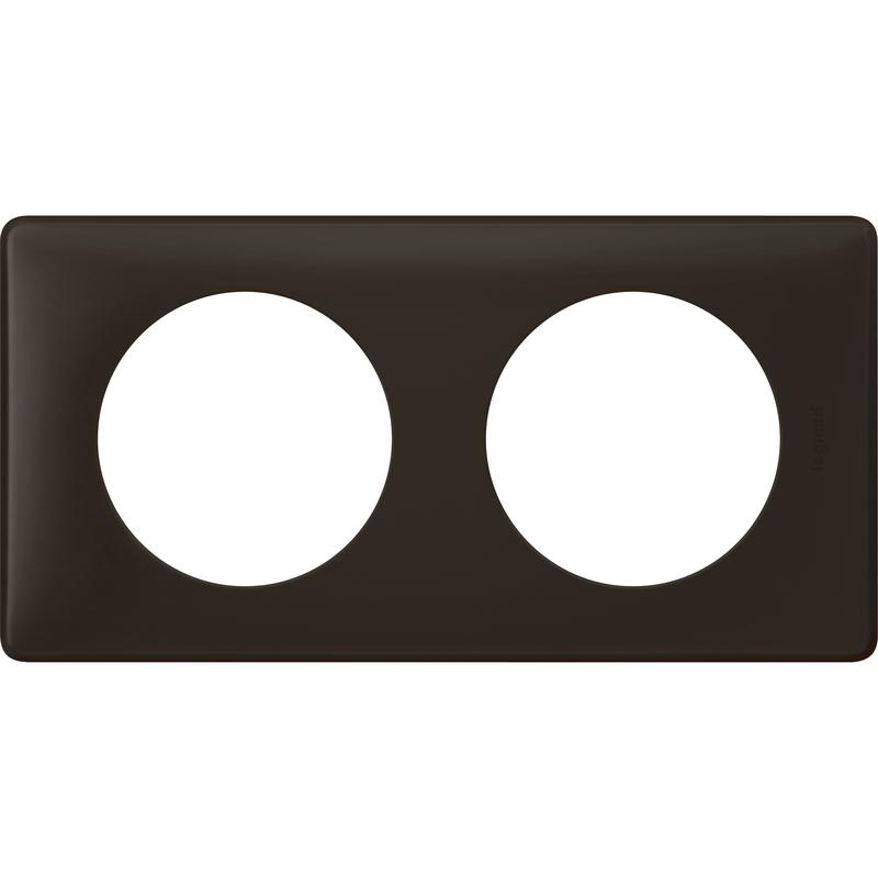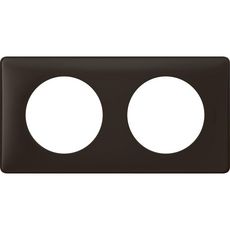Céliane Plaque avec 2 postes.Coloris Basalte.Matière : plastique.A associer avec un support universel référence leg80251.Dimensions 18 x 9,8 x 3,4 cm.