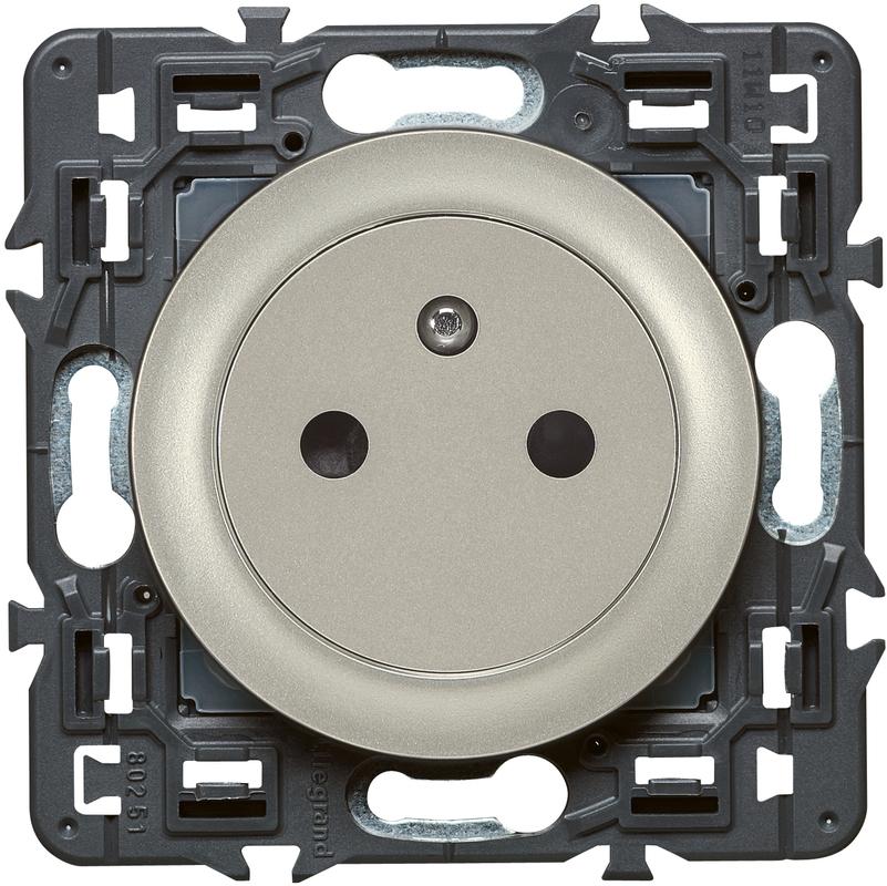 Celiane prise 2 pôles + terre esthétique titane composable