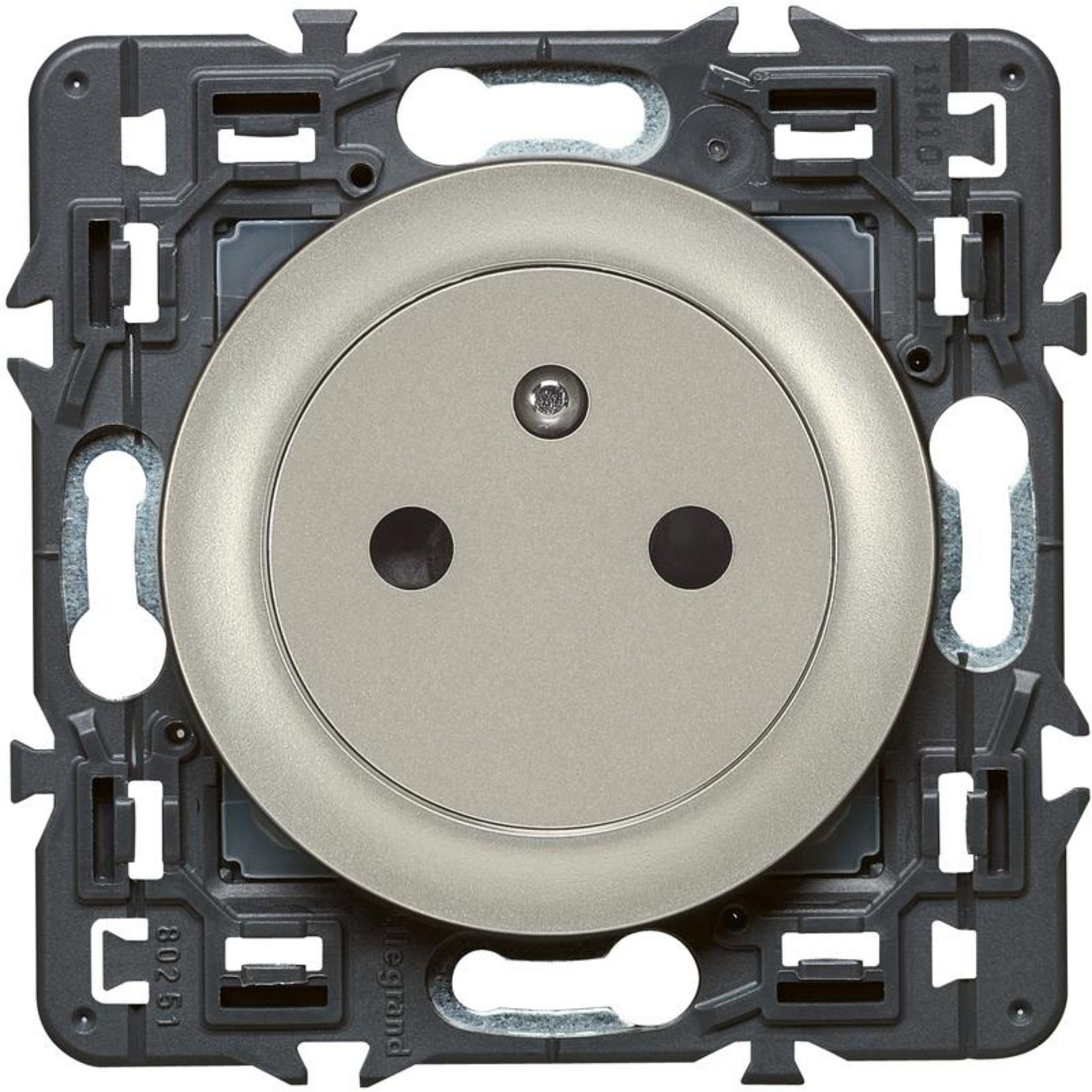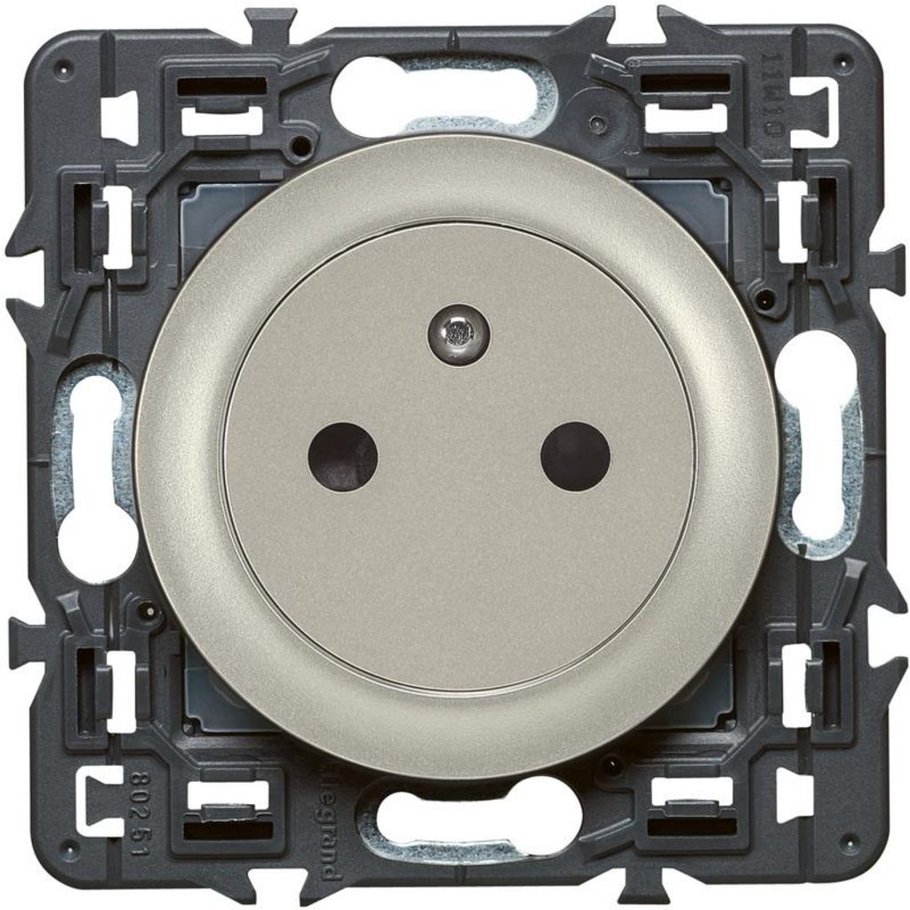 Prise 2 Pôles + Terre affleurante CELIANE Legrand coloris titane, à composer avec une plaque personnalisée, pour brancher votre matériel électrique équipé de prises traditionnelles 2 Pôles + Terre.