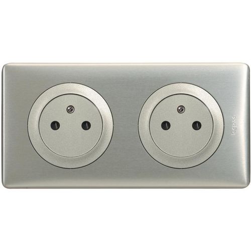 Kit double prise Céliane pré câblée avec boîte d'encastrement.Pour une pose en encastré.Coloris Titane.Multipliez les prises à partir du même raccordement16 Ampères, puissance maxi 3 680 Watts en 230 Volts.Dimensions 8 x 18 x 9 cm.Matière Plastique.