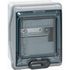 Coffret étanche 1 rangée pour 6 modules.Indice de protection : IP55.Dimensions 11,6 x 16,4 x 20 cm.