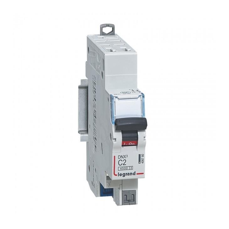 DNX3 Disjoncteur 1P+NG C2 4500A auto 1 module.Courbe c. pour peigne hx3 optimisé universel mono.Pouvoir de coupure: - 4500. 230 volts - 50 hz - 4,5 ka.Types de connexion: - vis/vis: arrivée haute et sortie basse par bornes à vis - auto/auto: arrivée haute par bornes auto et sortie basse par bornes a