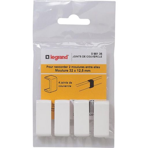 Joints de couvercle pour moulure 32x12,5mm.Coloris blanc.Pour relier deux moulures et cacher les fentes.