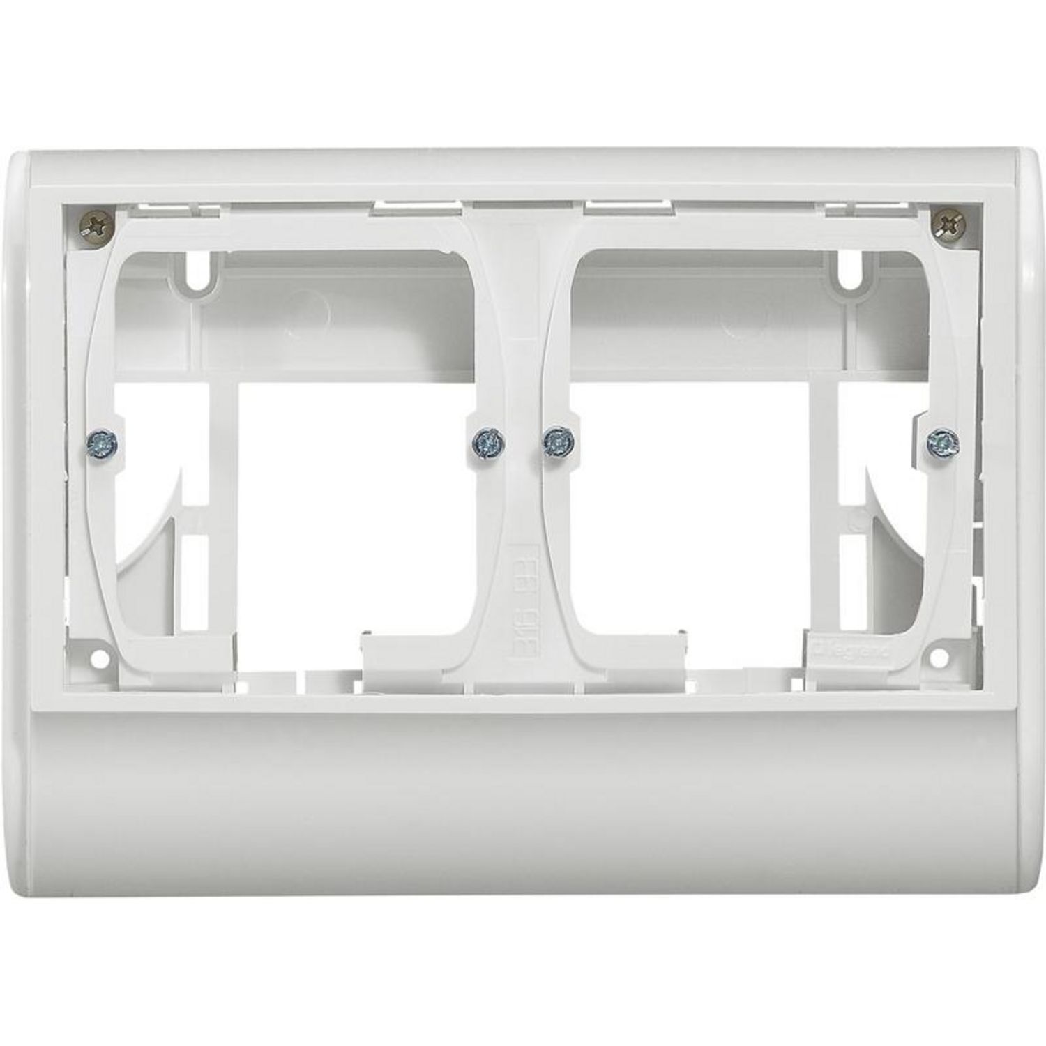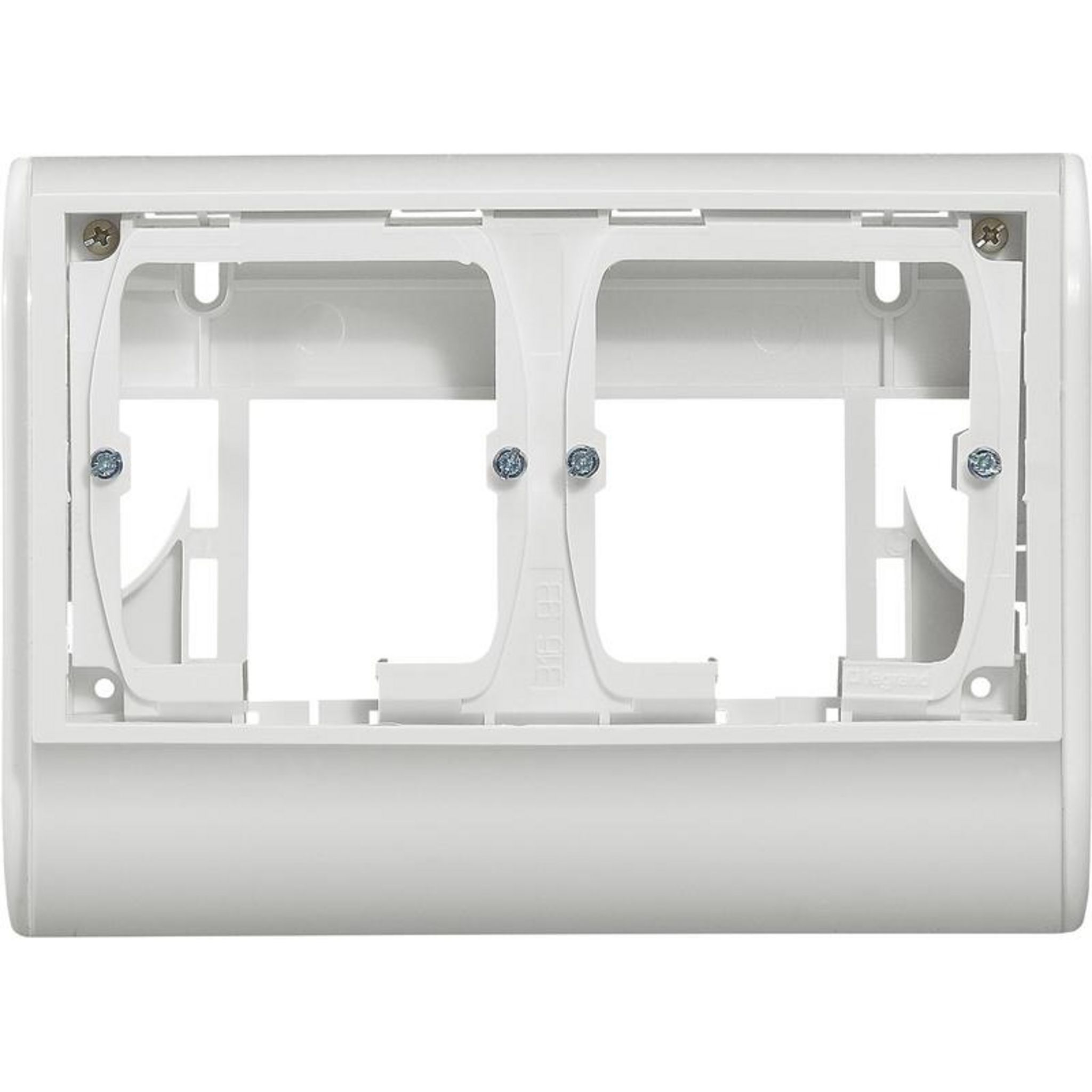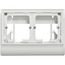 Cadre double pour montage appareillage Mosaic sur plinthe 80 x 20 mm.Coloris Blanc.Matière plastique.Dimensions 17 x 12 x 5 cm.