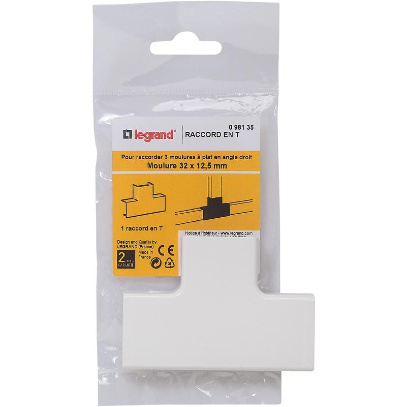 Raccord en T pour moulure 32x12,5mm. Coloris blanc. Pour relier trois moulures en anlge droit.