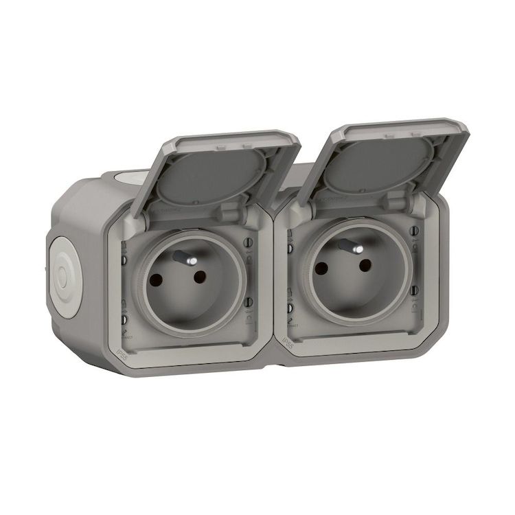 Double prise avec terre étanche saillie Plexo, LEGRAND, gris