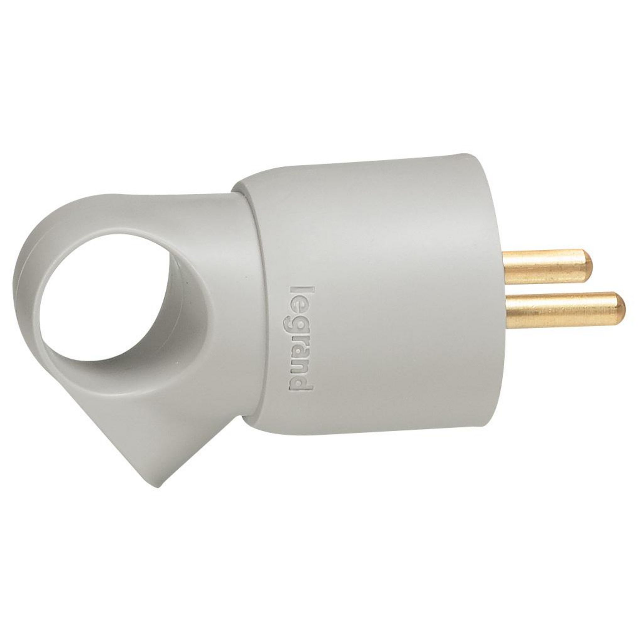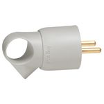 Fiche 2Prises+Terre avec anneau Legrand, en plastique, et de couleur grise, avec fixation à vis.