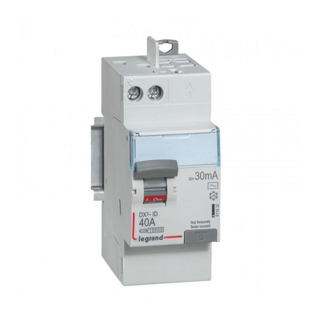 Interrupteur différentiel 40 Ampères, Type AC.Sensibilité 30mA.Permettent la répartition optimisée par peigne.Conformes à la norme NF EN 61008-1.Type AC : détectent les défauts à composante alternative.Reçoivent les auxiliaires.Connection vis/auto : arrivée haute par bornes à vis et sortie haute par