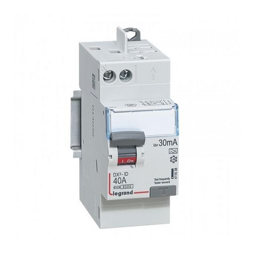 Interrupteur différentiel 40 Ampères, Type AC.Sensibilité 30mA.Permettent la répartition optimisée par peigne.Conformes à la norme NF EN 61008-1.Type A : détectent les défauts à composantes alternative et continue (circuits spécialisés : cuisinière, plaque de cuisson, lave-linge...).Connection vis/a