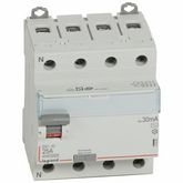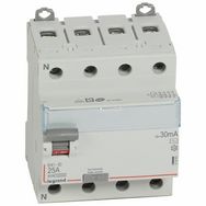 Interrupteur différentiel DX³ ID arrivée haute et départ bas à vis 4P 400V type AC 4 modules 30mA 25A LEGRAND 411660