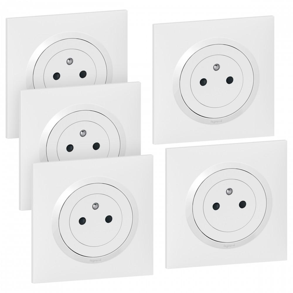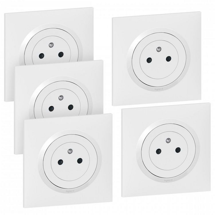 Lot de 5 prises avec terre complet Dooxie, LEGRAND, blanc