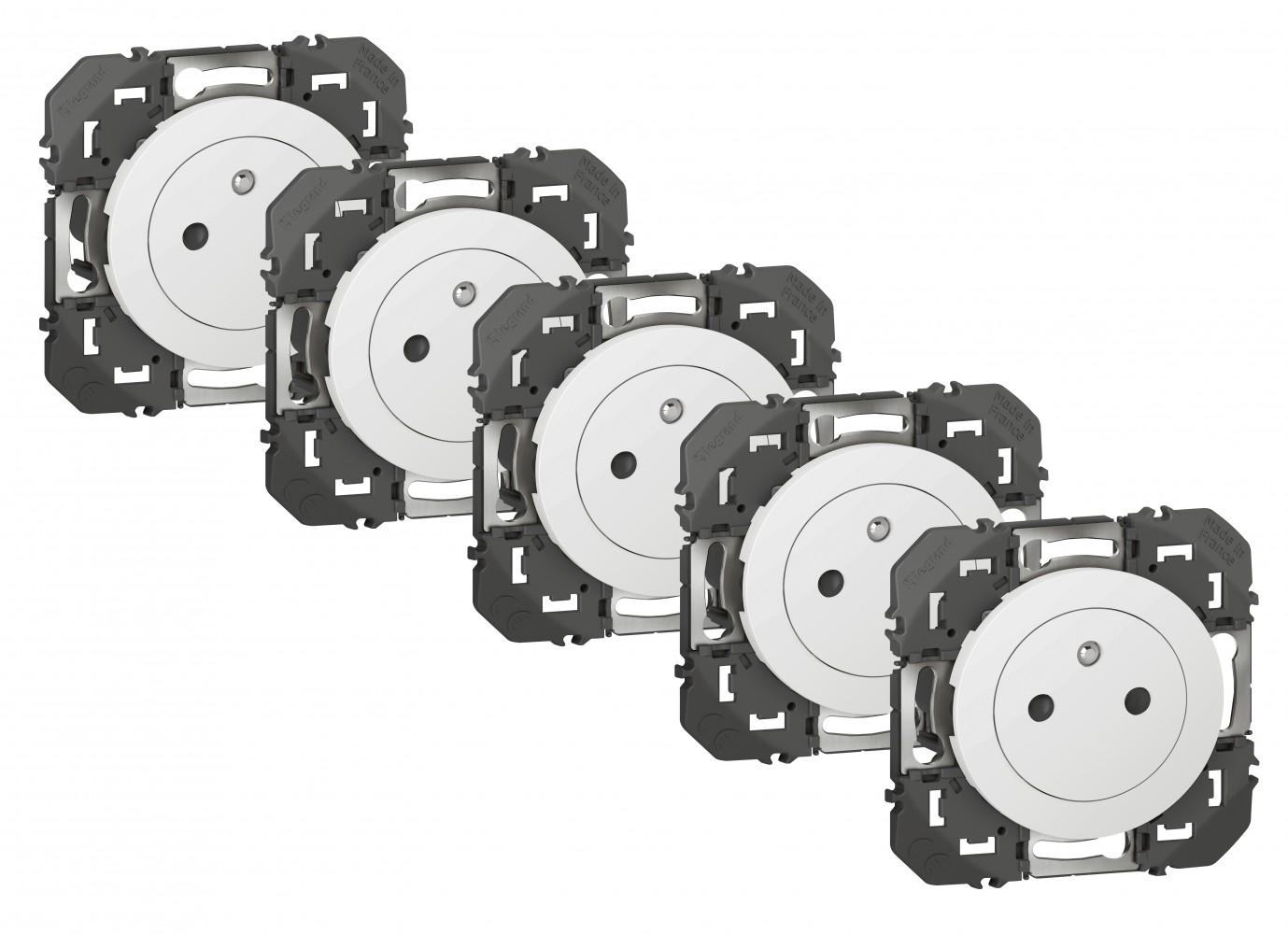 Lot de 5 prises avec terre Dooxie, LEGRAND, blanc