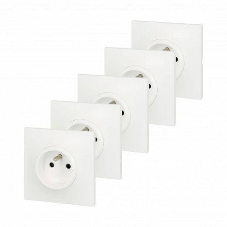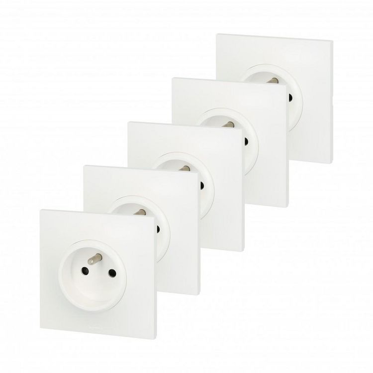 Lot de 5 prises avec terre Neptune, blanc, LEGRAND