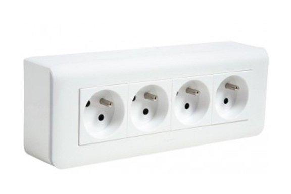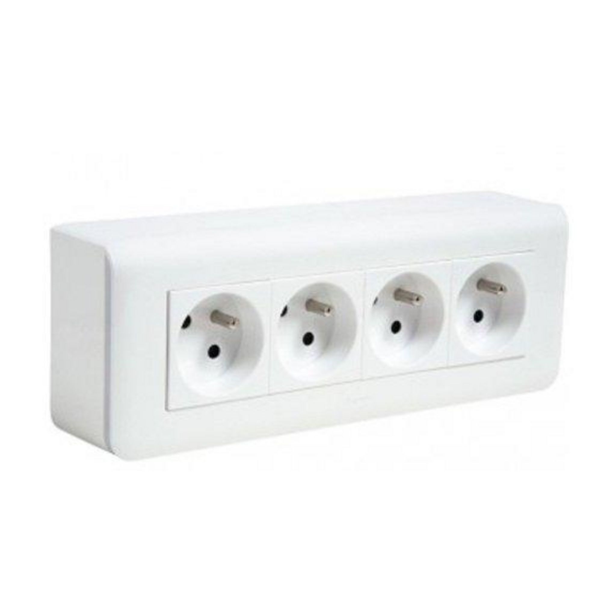 Kit essentiel mosaïque 4 prises de courant + support + cadre saillie.Prises électriques à 2 modules.Livré avec support et cadre saillie.Avec terre.Précâblée.