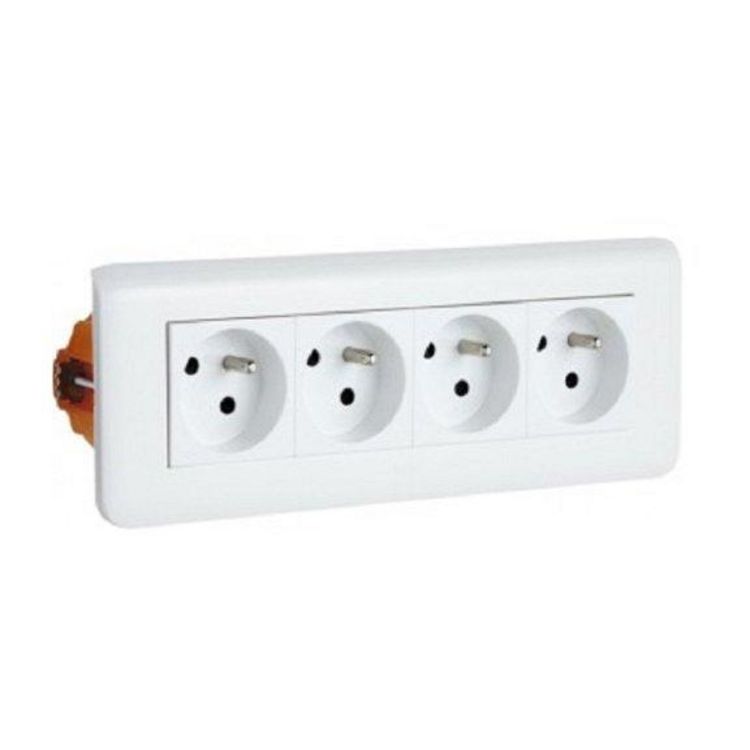 Kit essentiel mosaïque 4 prises de courant + support + Boîte d'encastrement.Livré avec support et boîte d'encastrement.Avec terre.Précâblée.Encombrement réduit.