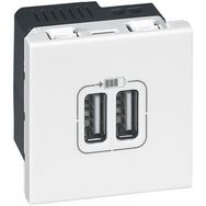 Prise chargeur USB Mosaïc 2 modules enjoliveur.Coloris Blanc.A associer aux plaques supports mosaic (montage encastré) ou aux cadres Mosaic (montage saillie).Peut remplacer les mécanismes Mosaic existants : se montent avec les anciennes plaques et supports Mosaic.Equipés de bornes automatiques pour