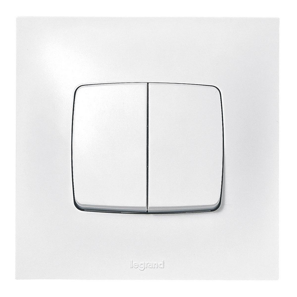 Interrupteur double poussoir Neptune de la marque Legrand.