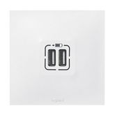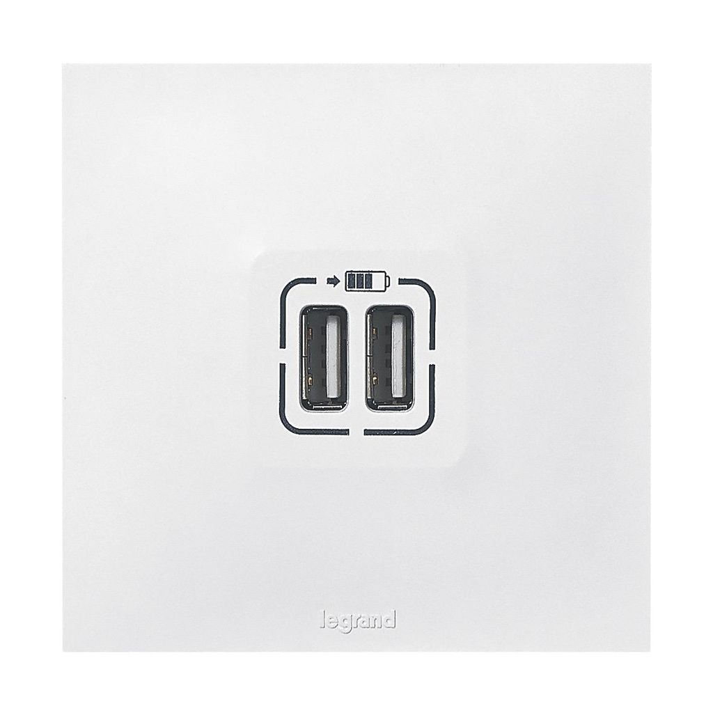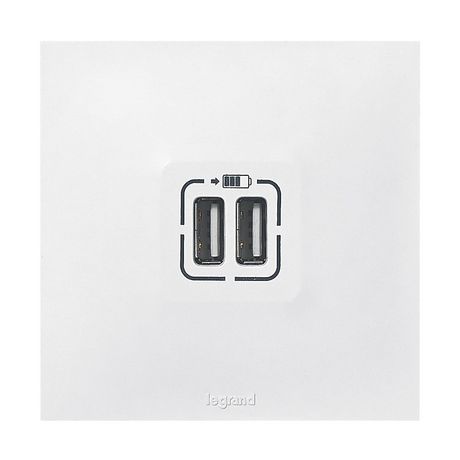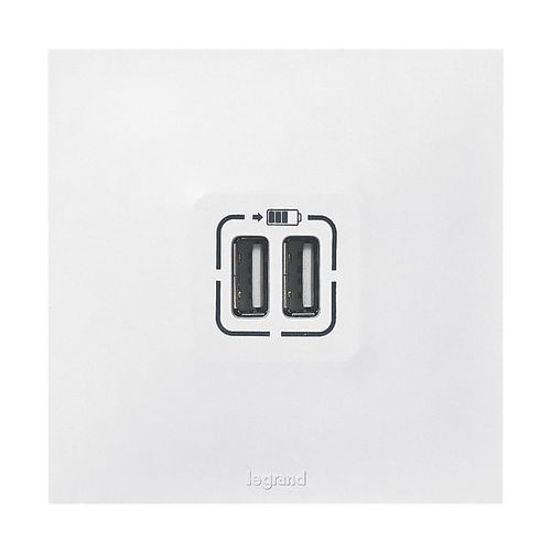Double prise USB Neptune de la marque Legrand.Couleur : Blanc.Pratique, dédiée au chargement des appareils mobiles, elle s'installe à la place d'une prise de courant et permet de recharger 2 appareils en même temps et à vitesse optimale.Permet le chargement de téléphones portables, de tablettes, sma