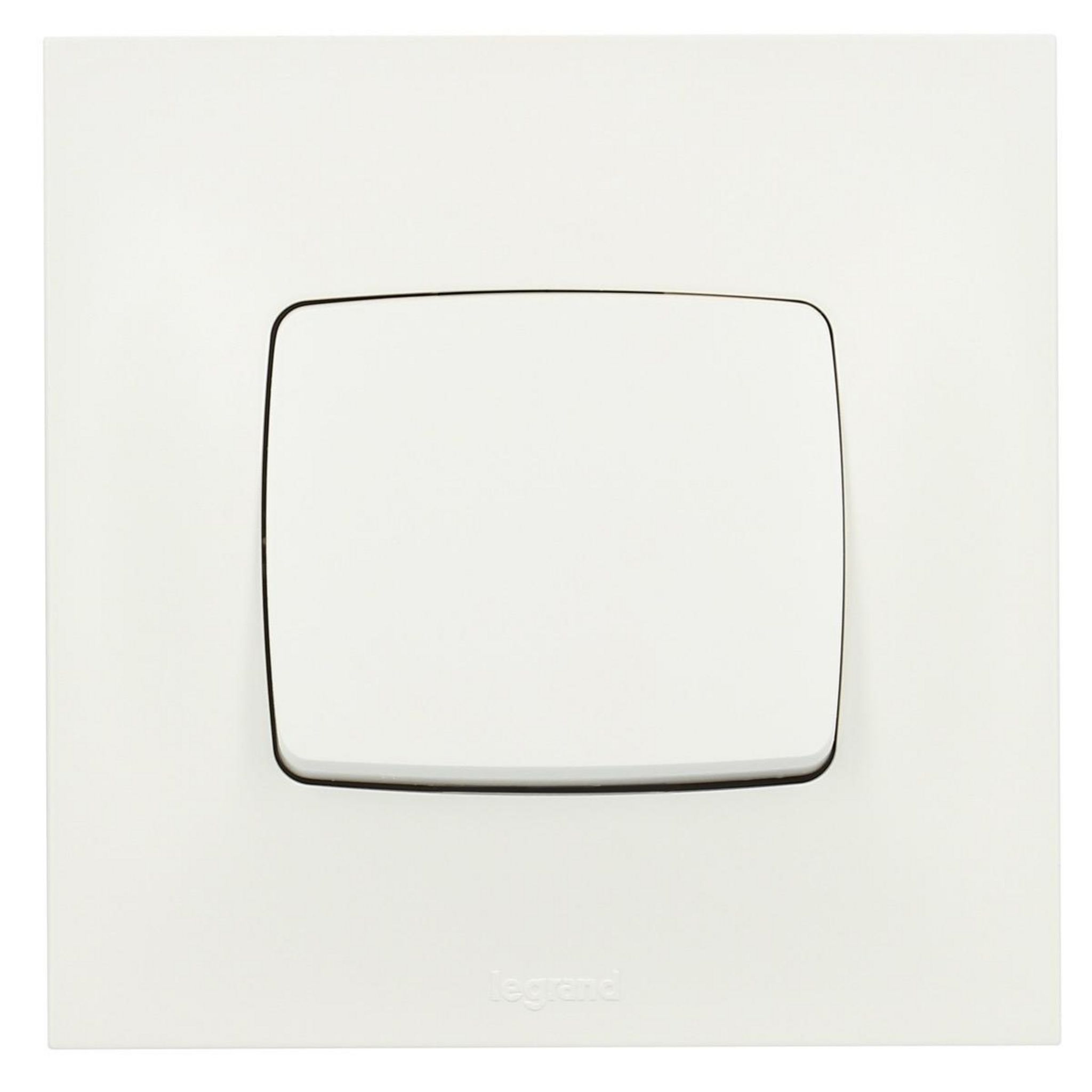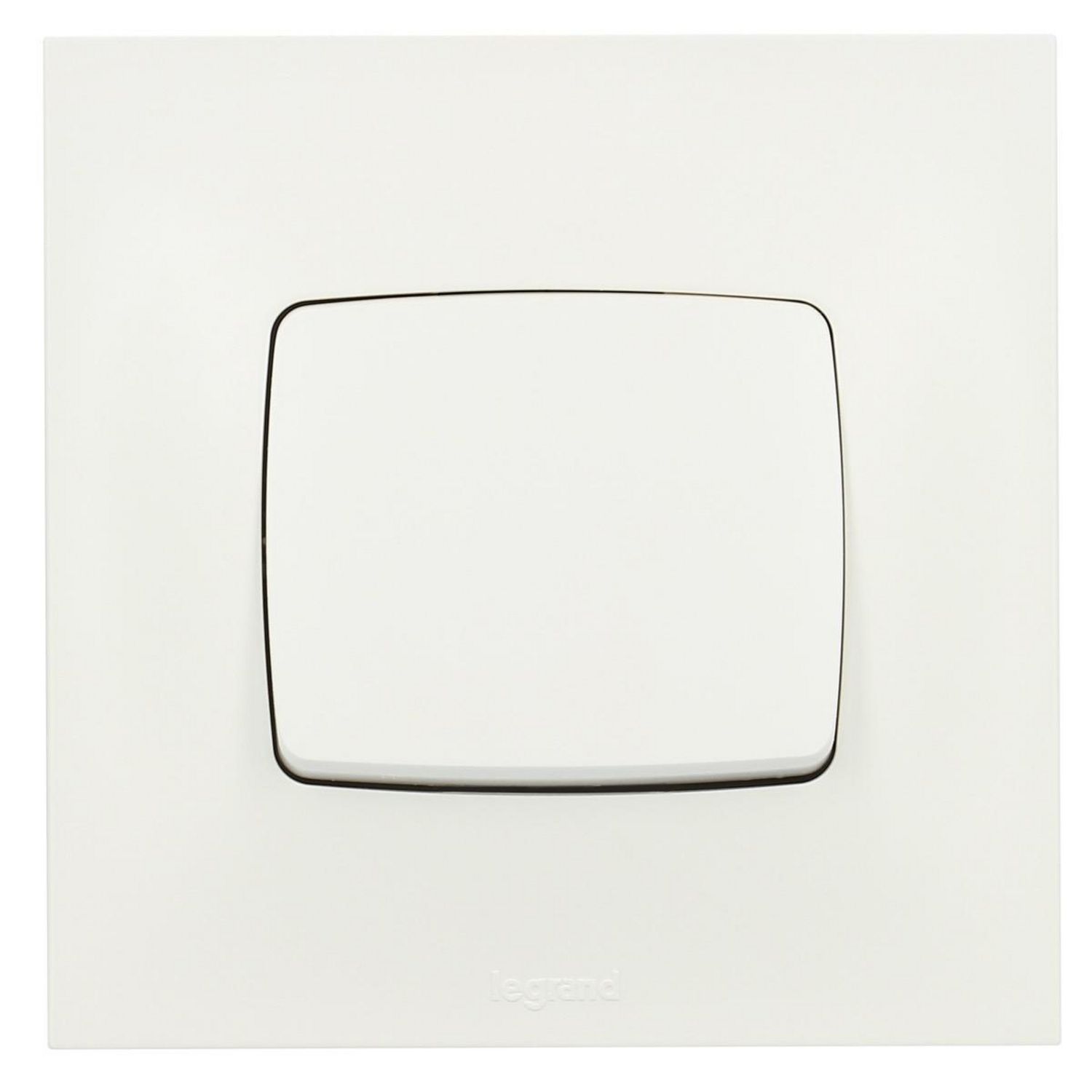 Interrupteur poussoir Neptune de la marque Legrand.Couleur : Blanc.Intensité : 6 ampères.Puissance maxi : 2 300 watts en 230 volts.Raccordement par borne automatique après simple dénudage des fils.Fixation : vis/griffes.