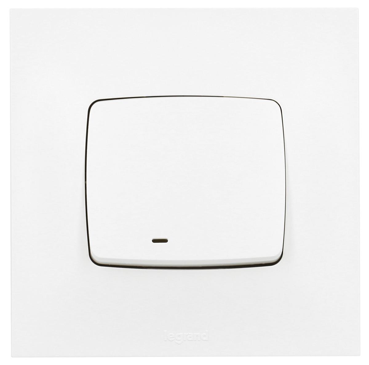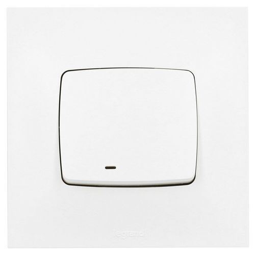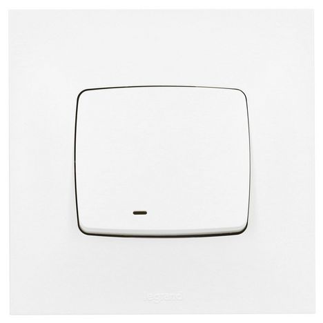 Interrupteur poussoir avec voyant lumineux Neptune de la marque Legrand.Couleur : Blanc.Intensité : 6 ampères.Puissance maxi : 2 300 watts en 230 volts.Raccordement par borne automatique après simple dénudage des fils.Fixation : vis/griffes.
