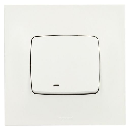 Interrupteur va-et-vient avec voyant lumineux Neptune de la marque Legrand.Couleur : Blanc.Intensité : 10 ampères.Puissance maxi : 2 300 watts en 230 volts.Raccordement par borne automatique après simple dénudage des fils.Fixation : vis/griffes.