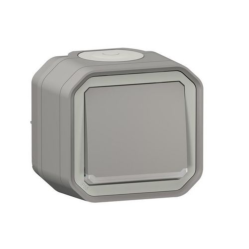 Poussoir NO lumineux avec voyant étanche PLEXO 10 A livré complet pour fixation saillie gris (boîte de 10) LEGRAND 069722L