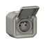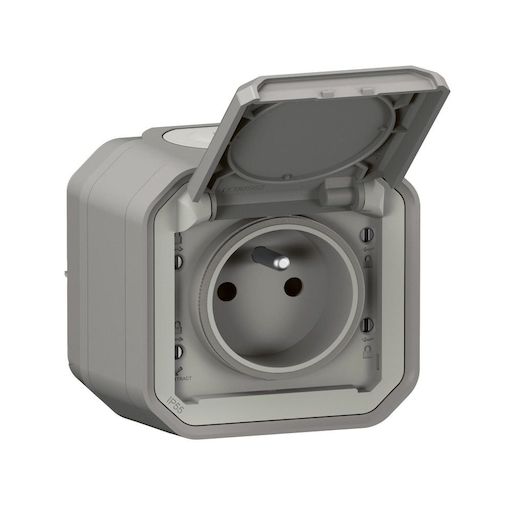 Prise avec terre étanche saillie, complet, LEGRAND Plexo, gris