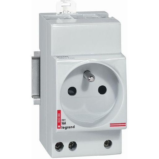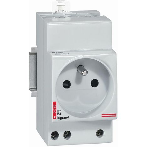 Prise de courant lexique 10/16 A avec éclips protection enfants 2,5 modules.Se montent dans les tableaux électriques à équiper.Prise de courant.10/16 ampères, puissance maxi 3680 watts en 230 volts - 2,5 modules (1 module = 17,5 mm).
