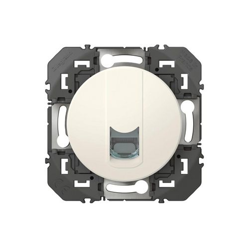 Mécanisme faible profondeur facilitant le refoulement dans la boîte d'encastrement. Prise équipée d'un connecteur rapide sans outil pour un câblage intuitif et fiable. Pour fiche RJ 45, RJ 12 et RJ 11. A associer avec une plaque de finition Dooxie (non fournie)