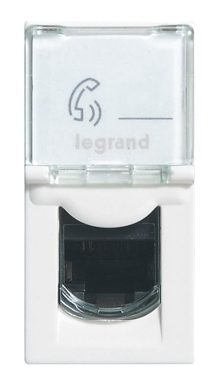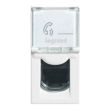 La prise RJ45 CAT5 blanche MOSAIC Legrand, largeur 1 module, s&rsquo,encastre dans des boÎtes spécialisées et se combine avec tous les boitiers d&rsquo,encastrements et enjoliveurs MOSAIC. Elle autorise le raccordement d&rsquo,un téléphone ou de matériel informatique. Elle permet notamment la connex