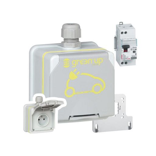 Le kit prêt-à-poser Green&rsquo,Up Access est la solution de la marque Legrand pour recharger votre véhicule électrique ou hybride en toute sécurité. La présence du disjoncteur différentiel dans le pack permet de sécuriser l&rsquo,installation grâce à une ligne dédiée sur votre tableau électrique.Le