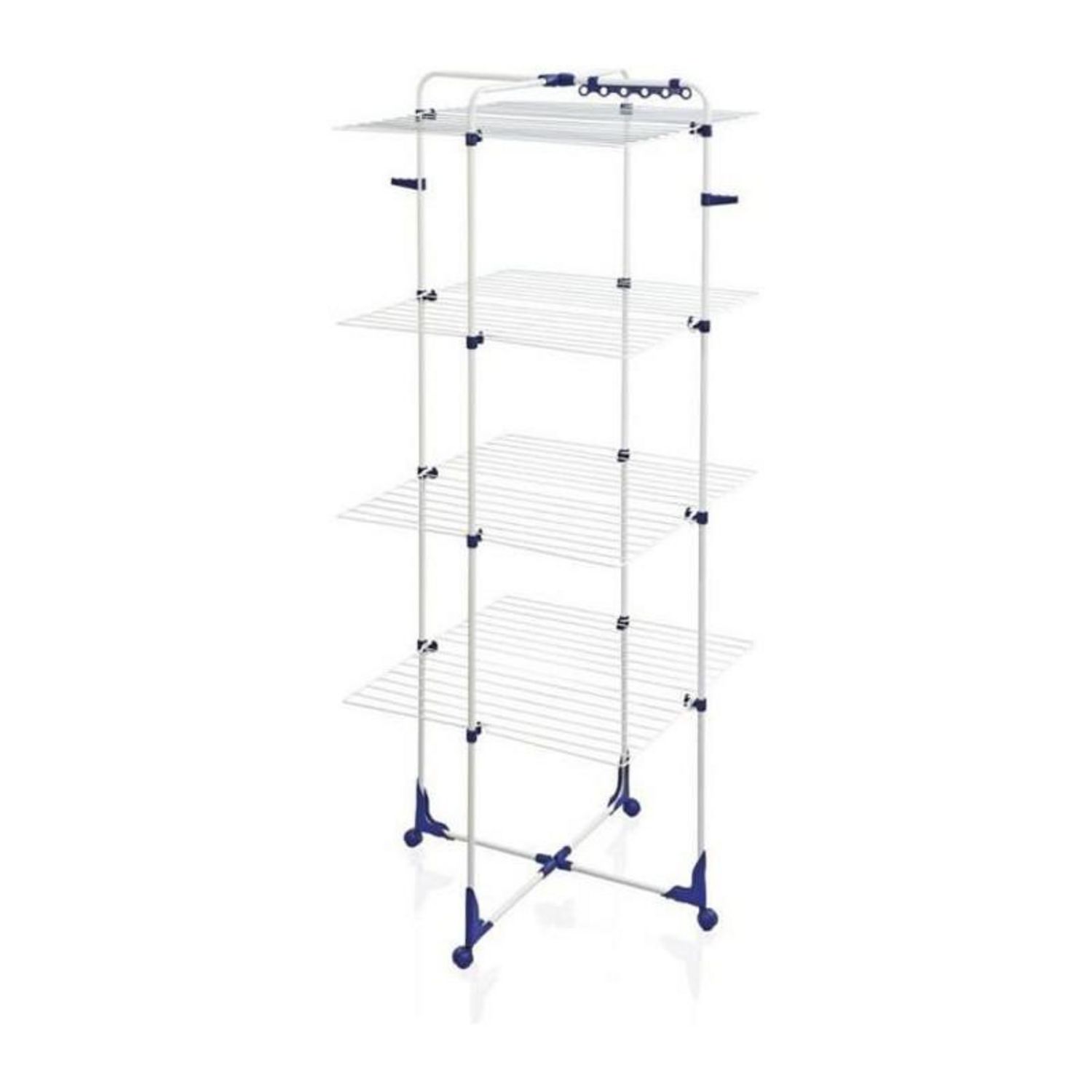Le Classic Tower 450 est équipé de quatre roulettes avec une articulation rotative à 360°, permettant une mobilité facile dans toutes les directions, même lorsqu'il est pleinement chargé. Cela facilite le déplacement du sechoir vers un endroit ensoleillé ou mieux ventilé pour un séchage optimal. De plus, le sechoir peut être plié plat après utilisation, ce qui le rend facile à stocker dans des espaces étroits.