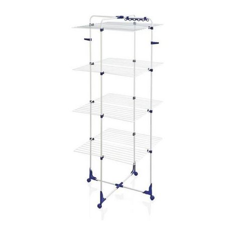 Ce sechoir tour propose trois niveaux de séchage superposés, offrant une longueur totale de 45 mètres, suffisante pour sécher 4 à 5 charges de lave-linge. Les barres de chaque niveau peuvent être repliées individuellement, ce qui le rend parfait pour sécher des vêtements longs ou volumineux. De plus, le cadre peut être plié en deux pour une utilisation sur un seul côté, augmentant sa flexibilité.