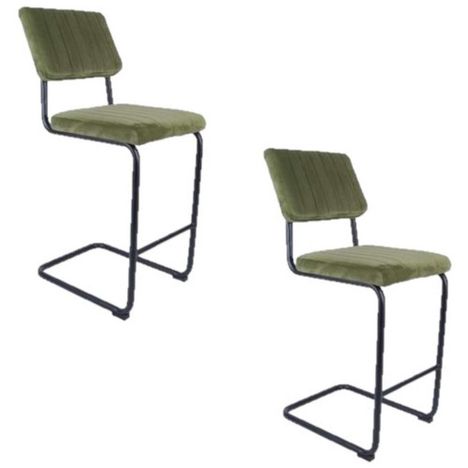 Lot de 2 Tabourets de bar cantilevers design effet velours Keen - Vert