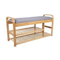 Banc Arch avec deux étagères en bambou et tissu - Gris