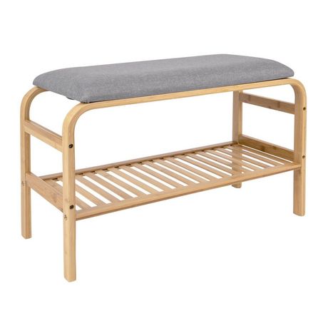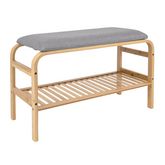 Banc d'entrée en bambou avec 1 étagère de rangement - Bois et Gris