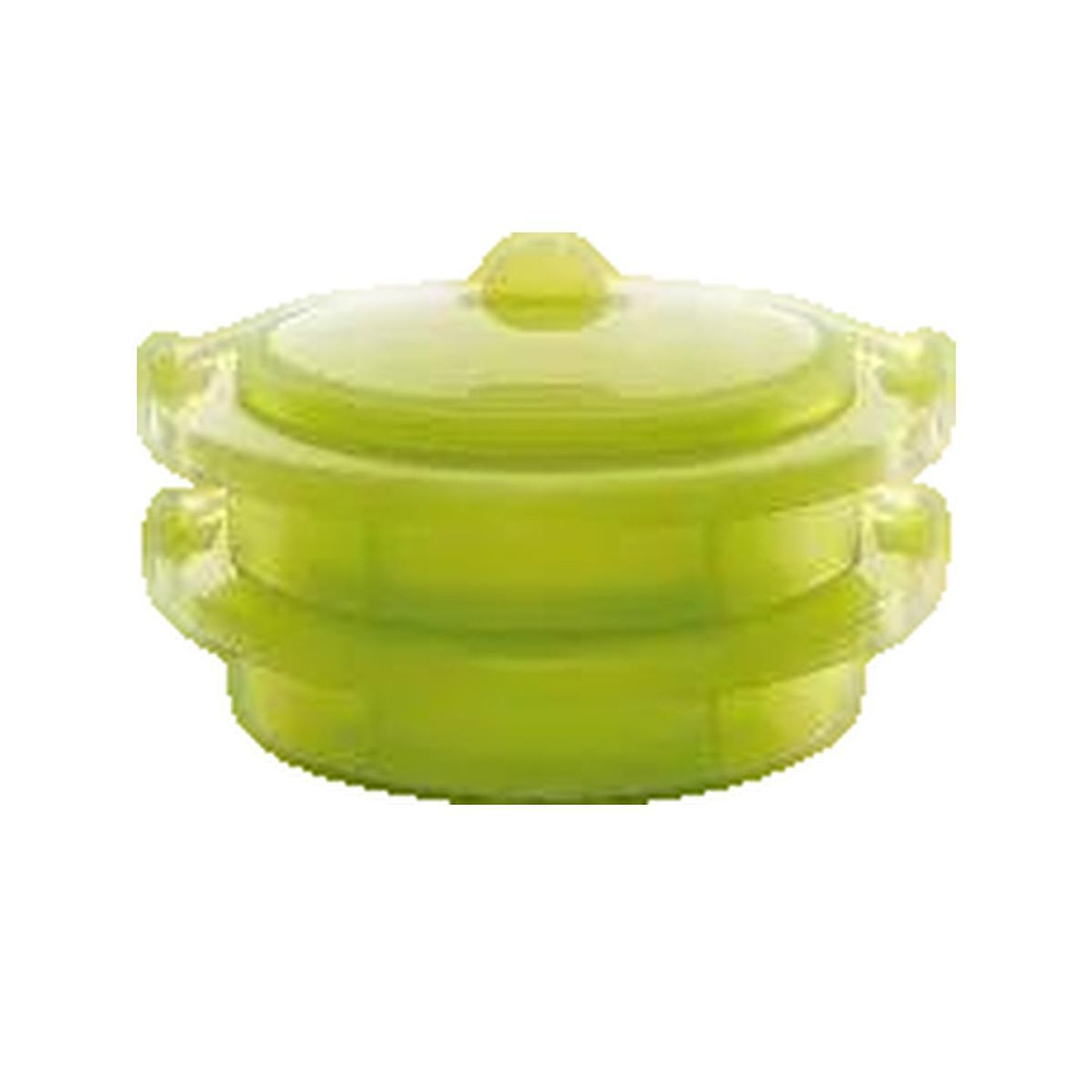 Le cuiseur vapeur Donne Moi Un Nom de la marque Lekue est un appareil de cuisine en silicone platine 100% conçu pour une cuisson saine. Ce cuiseur vapeur vert offre une capacité de 1,2 litre et un diamètre de 22 cm, permettant de cuire plusieurs aliments simultanément grâce à ses deux niveaux. Il ré