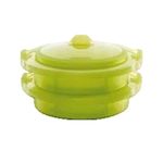 Le cuiseur vapeur Donne Moi Un Nom de la marque Lekue est un appareil de cuisine en silicone platine 100% conçu pour une cuisson saine. Ce cuiseur vapeur vert offre une capacité de 1,2 litre et un diamètre de 22 cm, permettant de cuire plusieurs aliments simultanément grâce à ses deux niveaux. Il résiste à des températures extrêmes, ce qui le rend compatible avec le four, le micro-ondes, le congélateur et le lave-vaisselle. Idéal pour les recettes nécessitant une cuisson vapeur pratique et rapide, ce produit est inspiré des cuisines asiatiques modernes et apporte une touche design à votre cuisine.