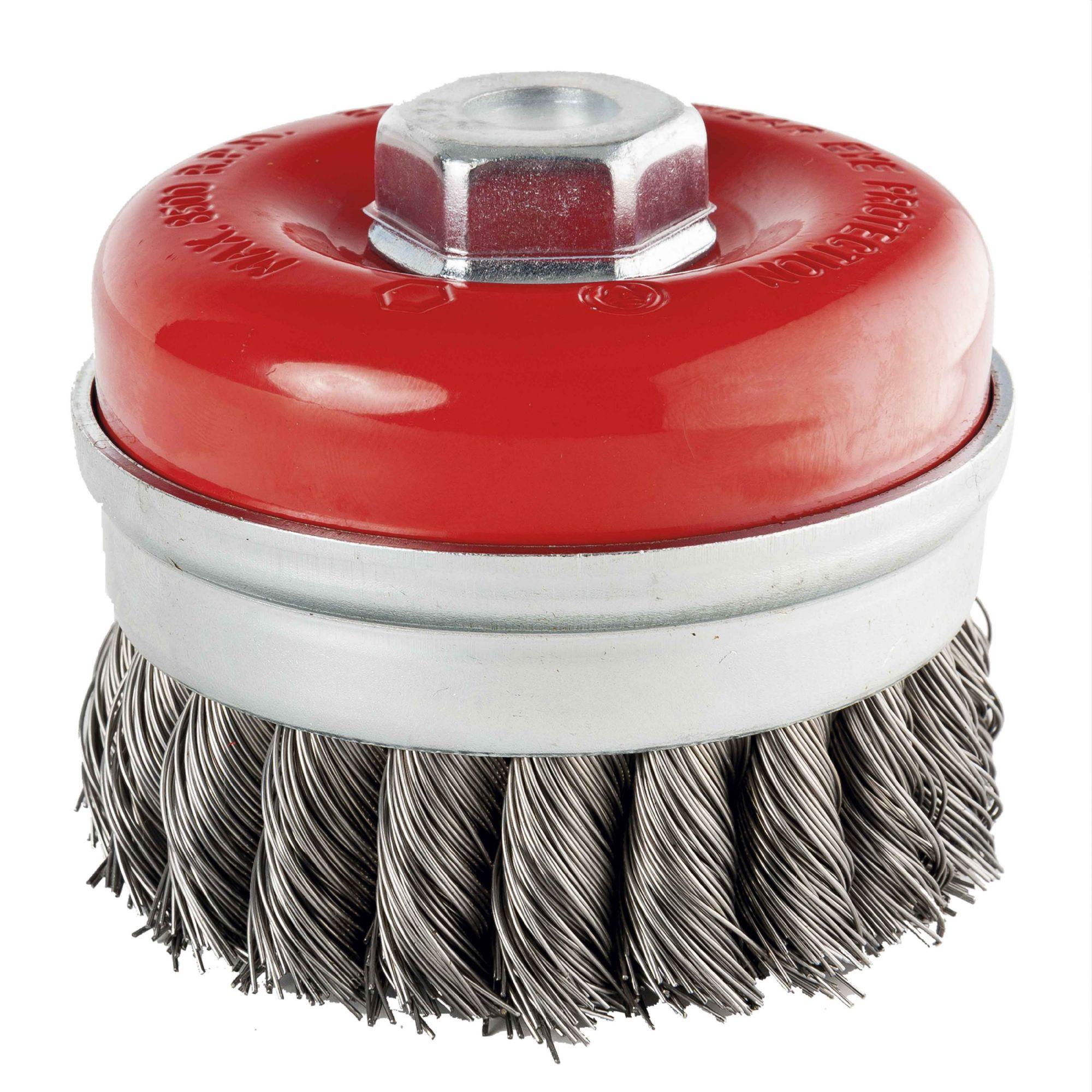 Pensez à vous protéger les yeux et les mains quand vous utilisez cette brosse sur votre disqueuse meuleuse.Brosse conique de 80 mm de diamètre.Vitesse rotation maxi: 8500 tr/min