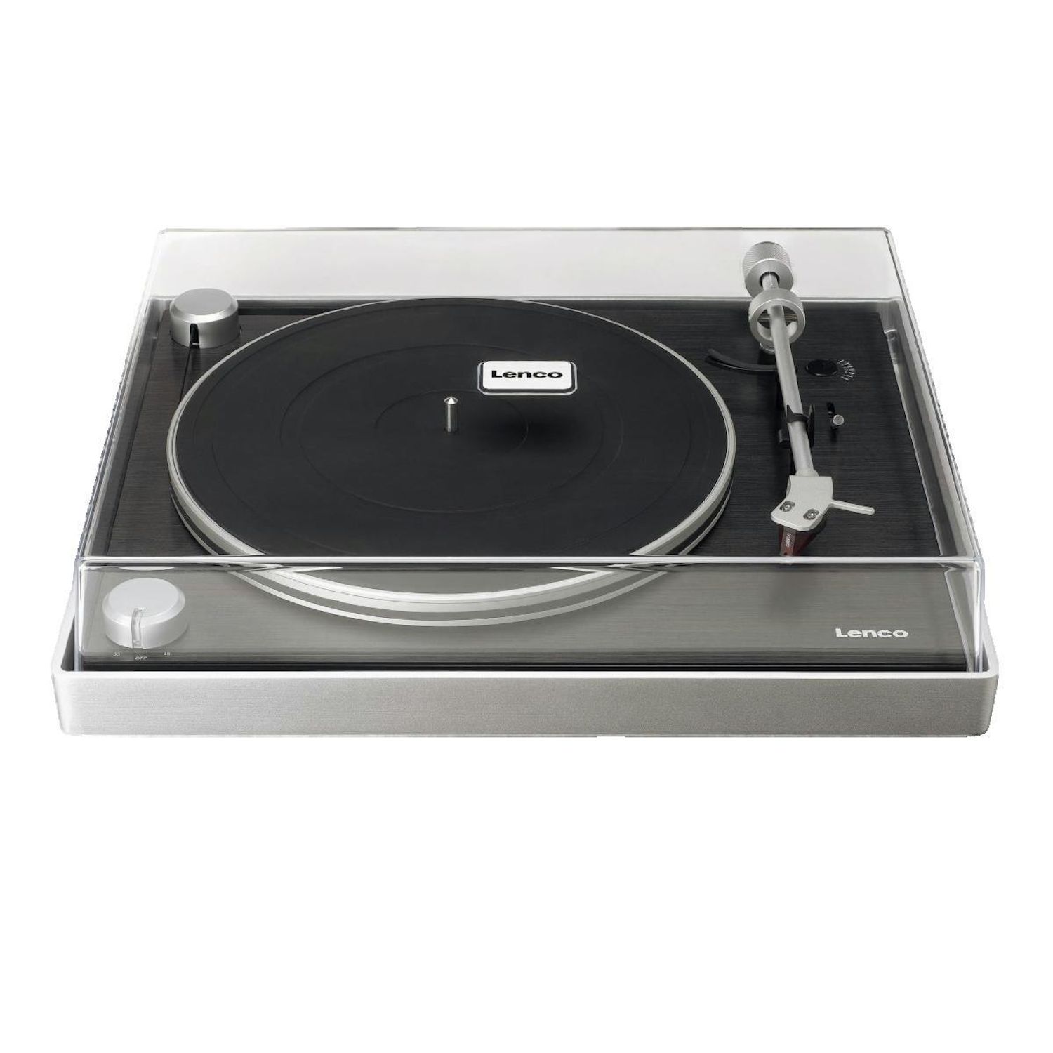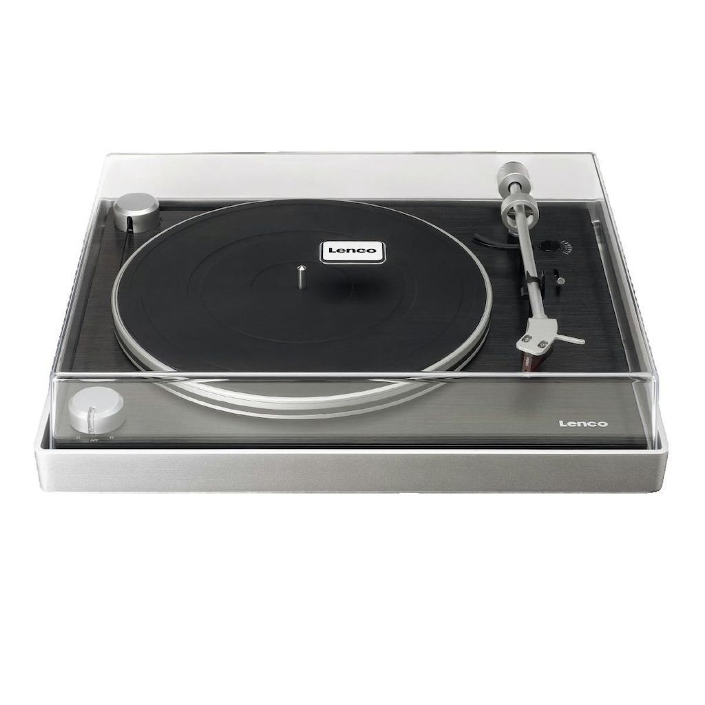 La platine vinyle Lenco L-455BK est conçue pour offrir une qualité sonore supérieure grâce à sa cartouche Ortofon 2M RED. Son design élégant inclut un cadre en aluminium brossé et un plateau en métal de 300 mm. Elle dispose d'un entraînement par courroie visible garantissant une performance stable.