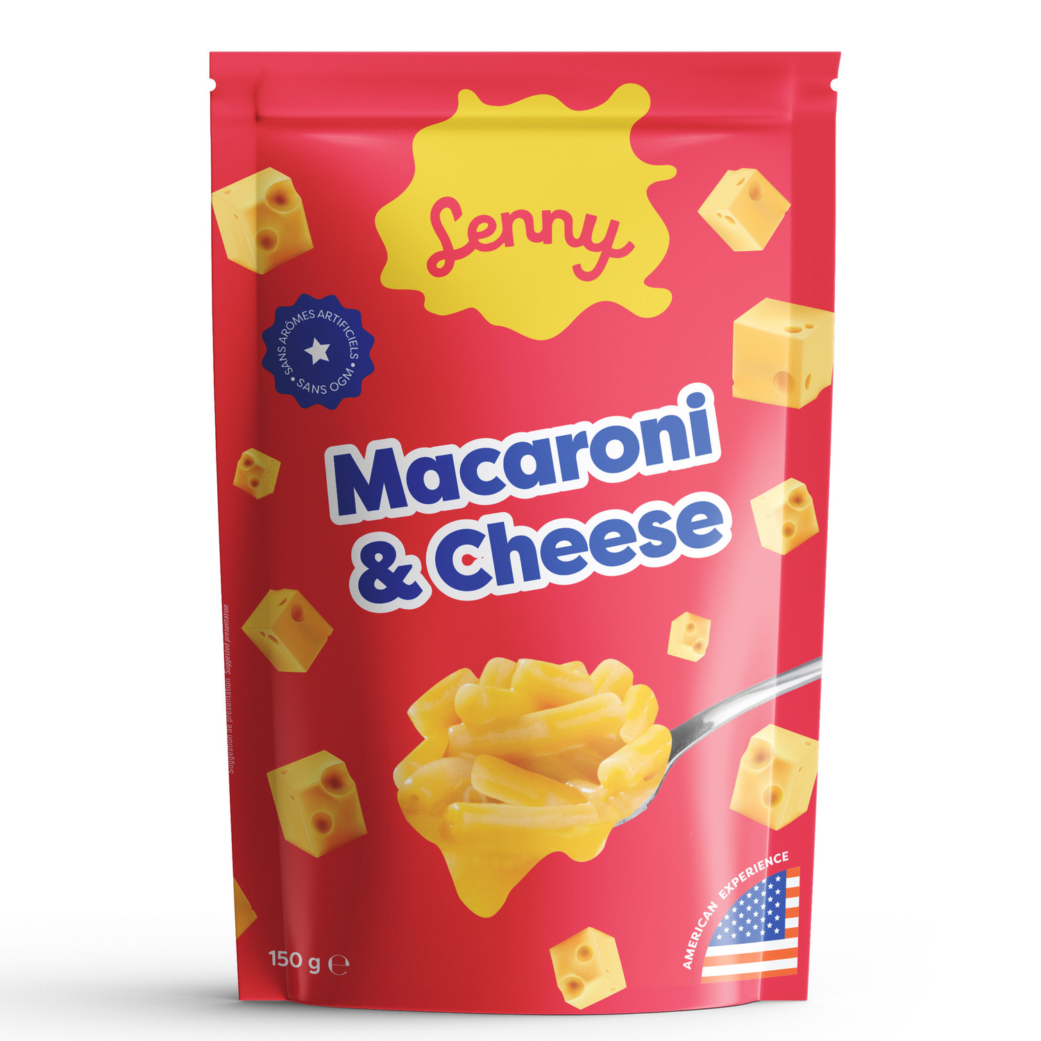 Ingrédients : Pâtes (semoule de blé) 74% (UE), lactosérum en poudre, sirop de glucose, farine de blé, fromage fondu (fromage, sels émulsifiants : E339, sel) 2,6% (UE ou non-UE), sel iodé (sel, iodate de potassium), amidon, lait écrémé en poudre, crème en poudre, arôme (contenant du lait), extrait de levure, curcuma, huile de tournesol. Peut contenir des œufs, du céleri, du soja, de la moutarde.