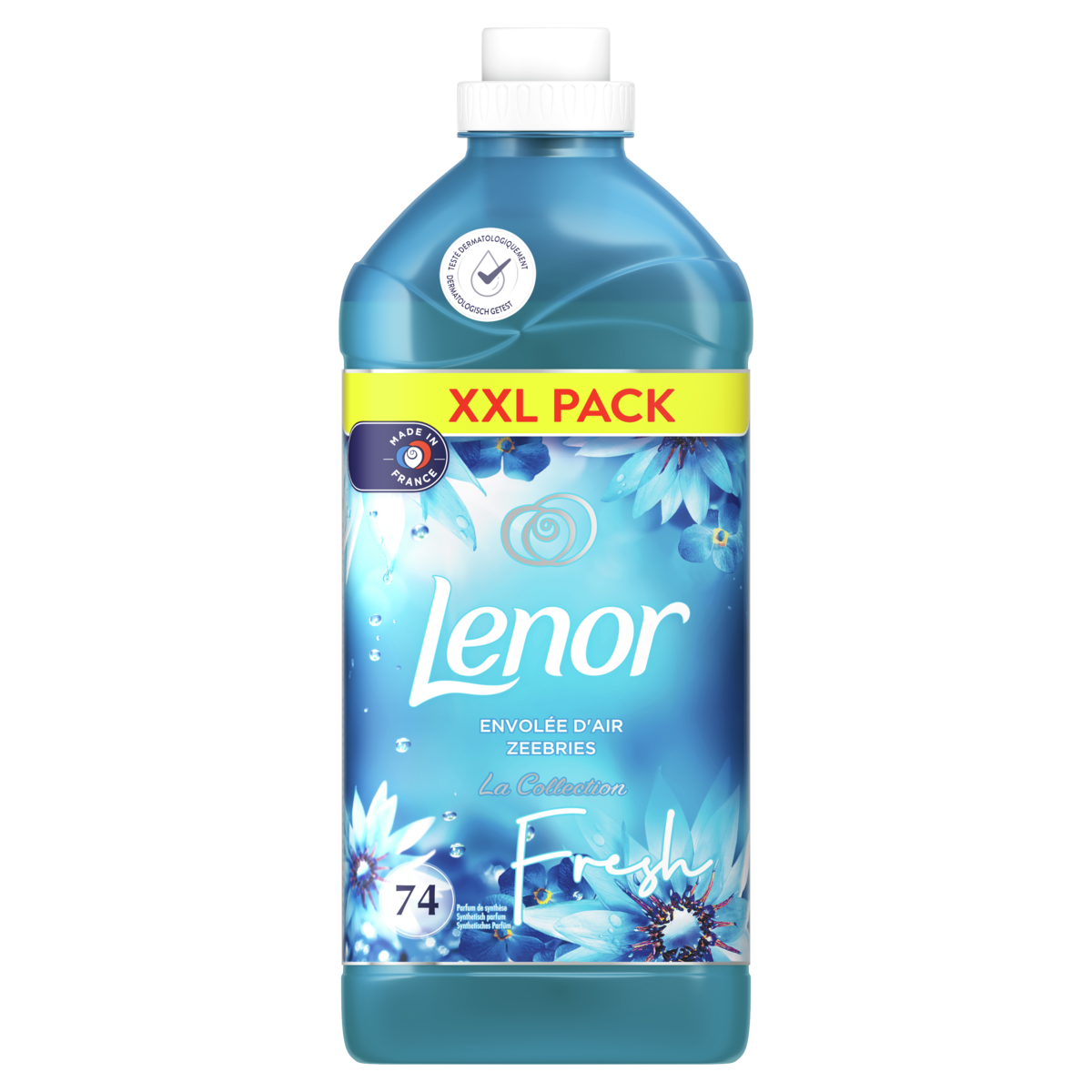 Inspirez profondément. La brise océanique caresse votre peau et ravive tous vos sens. Des fleurs fraîchement coupées, associées à des accords marins vifs et à une touche de citron. L’adoucissant Lenor Envolée d’Air Frais vous offre un parfum durable pour un lit frais pendant jusqu’à 1 semaine. La douceur du produit procure une sensation de confort, tout en limitant les froissements et en facilitant le repassage. L’adoucissant Lenor est fabriqué en France, testé dermatologiquement et produit dans une bouteille conçue à partir de 50 % de plastique recyclé. Astuce Utilisez-le avec la lessive Lenor pour un nettoyage en profondeur et un parfum complémentaire.