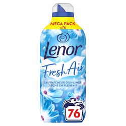 Avec l'adoucissant Lenor Fresh Air Fraîcheur Matinale, vous profitez d'une fraîcheur comme si vous aviez séché vos vêtements en plein air, même lorsque vous les séchez à l'intérieur ! Grâce à sa technologie innovante, il suffit d'une petite dose pour obtenir cette sensation de séchage en plein air, quel que soit le temps ! Combiné avec une protection anti-odeurs, l'adoucissant Lenor Fresh Fraîcheur Matinale offre un plaisir de fraîcheur longue durée. Lenor Fresh Air a été développé avec les consommateurs pour recréer la fraîcheur en plein air, et il continue de libérer de la fraîcheur lorsque vos vêtements sont simplement séchés, rangés dans l'armoire et même en les portant