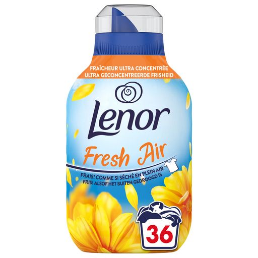 Profitez d'une sensation de fraîcheur comme si vos vêtements avaient séché à l'extérieur, même lorsqu'ils ont séché à l'intérieur. La formule fraîche ultra concentrée de Lenor Fresh Air est plus concentrée que les autres adoucissants Lenor, pour vous offrir 36 lavages dans une petite bouteille. Grâce à sa technologie innovante, vous n'avez besoin que d'une petite dose pour obtenir cette sensation de séchage en extérieur, quel que soit le temps. Lenor Fresh Air Rayons de Soleil regorge d'agrumes acidulés, de parfums fleuris de bouton d'or et d'une fraîcheur océanique. Lenor Fresh Air a été développé en collaboration avec les consommateurs pour recréer la fraîcheur de l'extérieur, et il continue à libérer de la fraîcheur lorsque les tissus viennent d'être séchés, qu'ils sont rangés dans le placard ou même lorsque vous bougez.