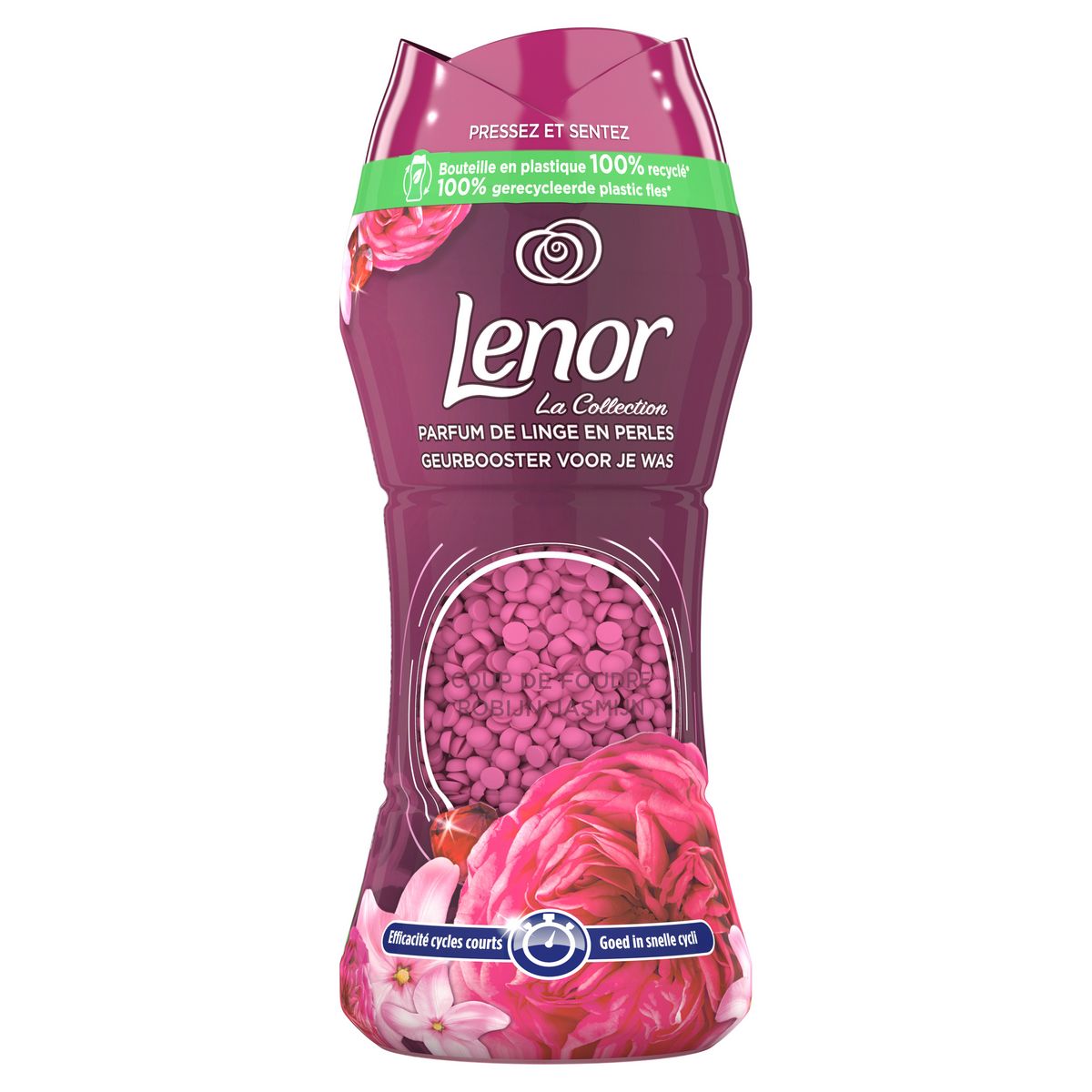 Découvrez le parfum de linge en perles Lenor, le dernier-né des expériences de bien-être Lenor. Pour plus de fraîcheur lavage après lavage (dans une armoire jusqu’à 12 semaines), Lenor infuse vos vêtements avec sa senteur Coup De Foudre. Avec sa somptueuse association de notes fruitées et fleuries, l’adoucissant Lenor Coup de Foudre saura vous séduire et raviver votre énergie et votre passion pour la vie. Il libère progressivement un somptueux parfum de jasmin et de freesia. Le parfum de linge en perles Lenor Coup De Foudre a été créé pour fonctionner en parfaite harmonie avec l’adoucissant Lenor Coup De Foudre. Chacun est enchanteur... Ensemble, ils sont irrésistibles. Je me sens bien en Lenor.