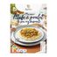 Ingrédients : Riz basmati cuit 40% [eau, riz long basmati 17% (Origine Hors UE), sel], morceaux de poulet traités en salaison et cuits 29% [aiguillettes de poulet 25% (Origine France), eau, dextrose de blé, fécule de manioc, sel], tomate pelée concassée au jus 7,9% [tomate 5,5% (Origine UE), jus de tomate 2,4% (Origine UE), acidifiant : acide citrique, affermissant : chlorure de calcium], eau, beurre de CACAHUETES 5,1% [ARACHIDES 5,0% (Origine UE ou Hors UE), sel], oignon 4,7% (Origine UE), poivron vert 2,2% (Origine UE), huile de colza, sucre, ail 0,7% (Origine Hors UE), fond de volaille (viande et jus de cuisson de volaille, sel de Guérande), mélange d’épices garam massala 0,5% [graine de coriandre 0,2%, poivre noir, piment de la Jamaïque, cumin 0,03%, cardamome 0,03%, curcuma, muscade, gingembre, girofle, laurier, cannelle, poudre de chili (piment, cumin, sel, origan, ail), piment de Cayenne - Origines UE et Hors UE], tomate en poudre, gingembre, coriandre, curcuma, sel, poivre. Traces éventuelles de lait, blé, œufs, soja, céleri, poisson, crustacés, mollusques, moutarde, graines de sésame et fruits à coque.