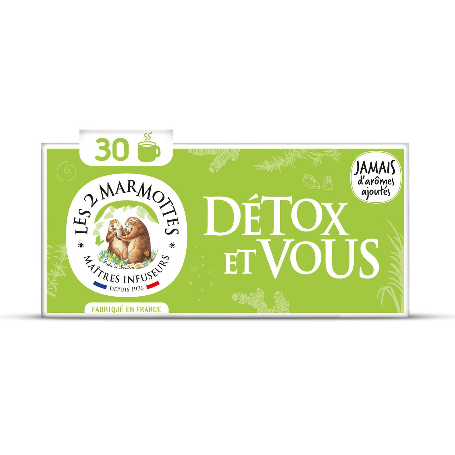 Infusion Détox et vous 50g 30 sachets infuseurs Les 2 Marmottes