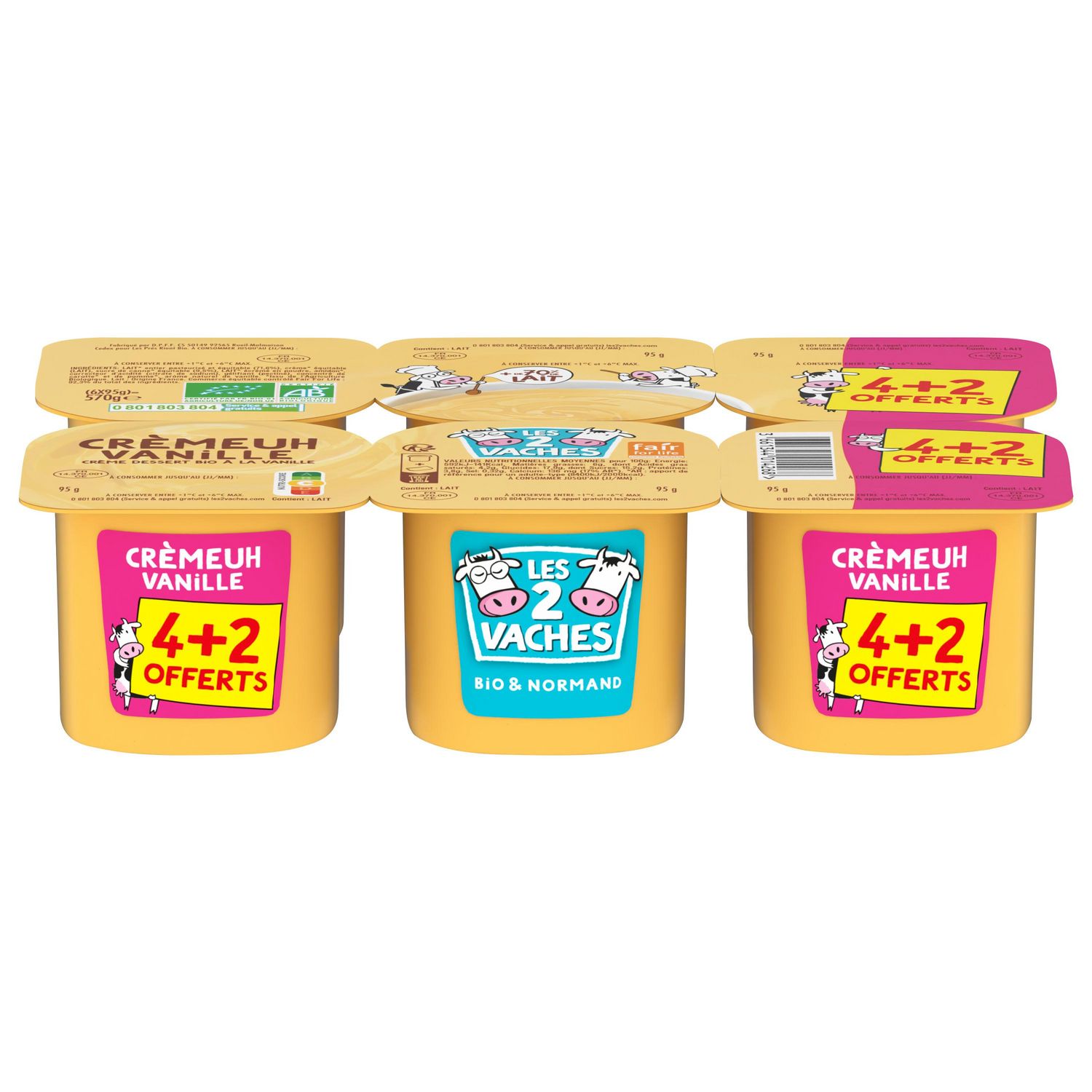 Le Crèmeuh Vanille Les 2 Vaches est une crème dessert, gourmande et généreuse avec du lait bio et équitable de Normandie. La recette est simple avec une liste d'ingrédients bio et équitables. Notre crème dessert à la vanille de Madagascar, onctueuse et délicate, est parfaite pour terminer le repas sur une note gourmande ! Les 2 Vaches Crèmeuh vanille est fabriqué au Molay Littry (Calvados).
