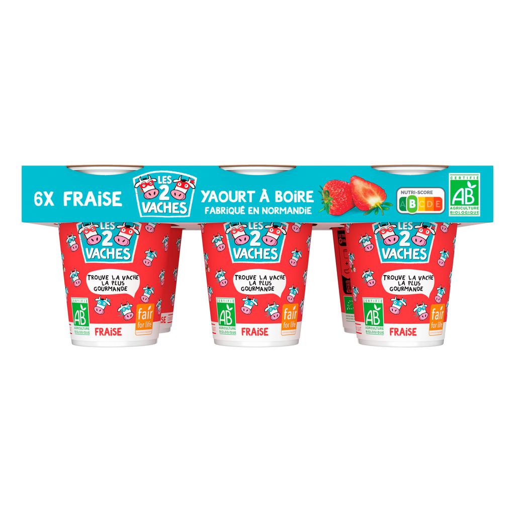 Les 2 vaches Yaourt à boire aux fraises bio est fabriqué grâce à du lait bio normand issu du commerce équitable et des fruits mixés. Il s'agit d'un yaourt à boire pour les petits et les grands enfants ! Pour déguster ce délicieux yaourt aux fraises bio, rien de plus simple: Secouez, ouvrez et dégustez, un vrai jeu d'enfant ! Les 2 vaches yaourt à boire aux fraises bio est fabriqué au Molay-Littry (Calvados).